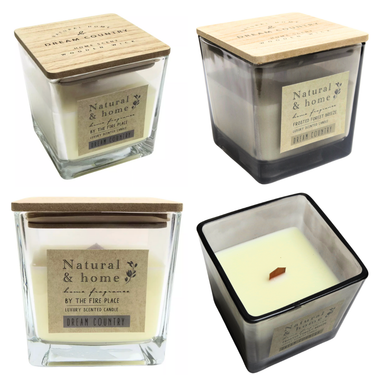 Candela profumata in vetro trasparente con coperchio in legno