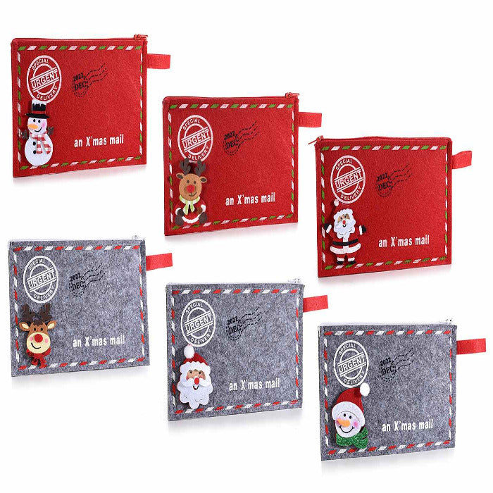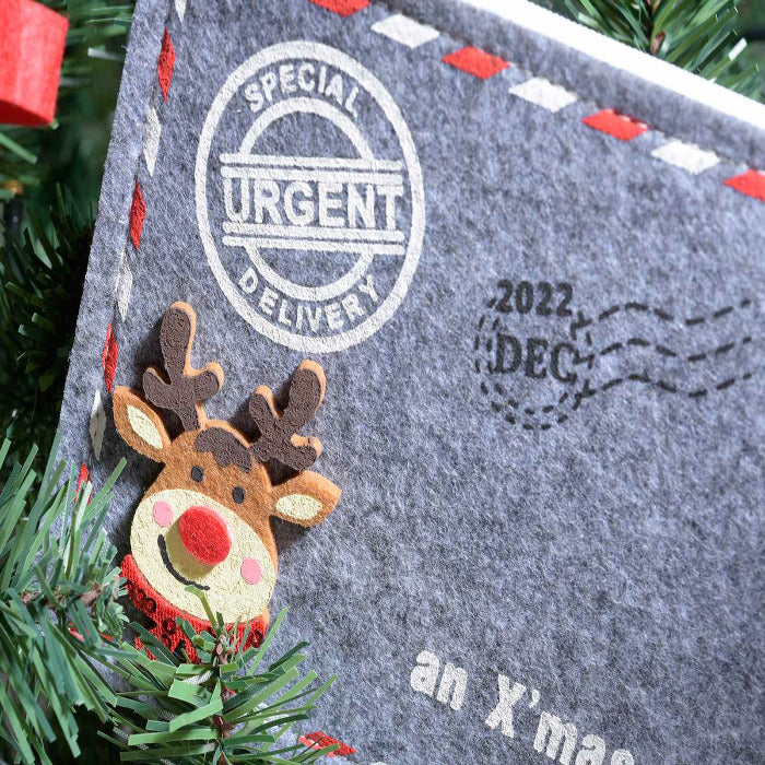 Morbida borsa in panno rosso a forma di busta per la letterina a Babbo Natale, con chiusura in velcro.